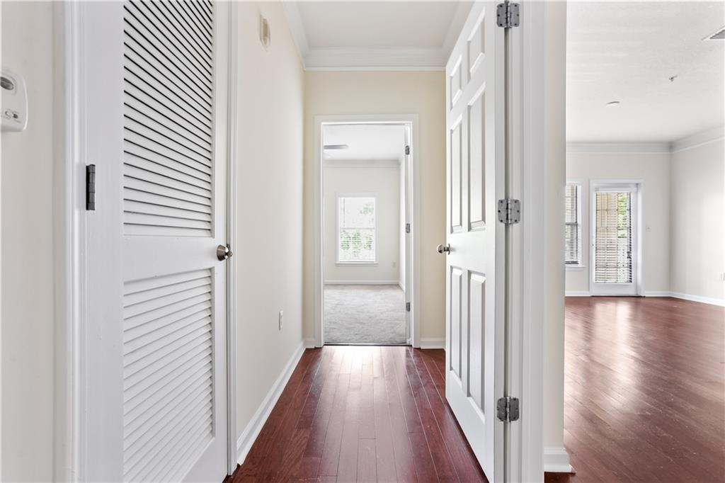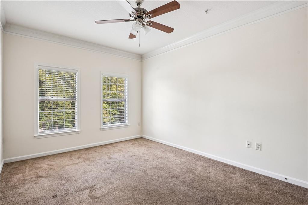 A quiet escape with fast city access -- walkable restaurants, quick commutes and thoughtful modern finishes. Work downtown, live peacefully here. Spacious 2BR/2BA condo in a in Gated Community with with fast city access, secure building with ideal split-bedroom layout--perfect for roommates, families, or remote work. Entryway features a true foyer with coat closet leading to an open concept but defined dining and living area with bonus office or reading nook. The kitchen includes ample cabinetry, stone counter-tops, a walk-in pantry, and a pass-through window--great for entertaining. The ensuites are positioned at opposite ends of the condo for maximum privacy. Both bedrooms offer large windows, newer flooring, and walk-in closets. The community offers all include a pool, tennis courts, walking trails, renovated social room, fitness center, dog park, theater, and package room and onsite management. Corner garage + covered parking, just steps from your front door. You're minutes from Emory University, Decatur's vibrant scene, the CDC, Children's Healthcare of Atlanta, and major corridors
